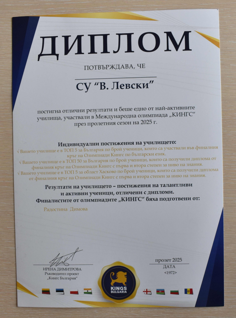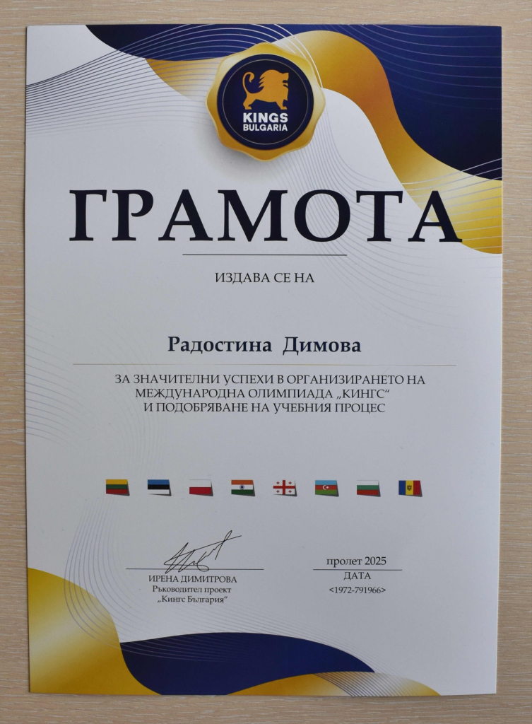ПОВОД ЗА ГОРДОСТ НА МЕЖДУНАРОДНАТА ОЛИМПИАДА „КИНГС“